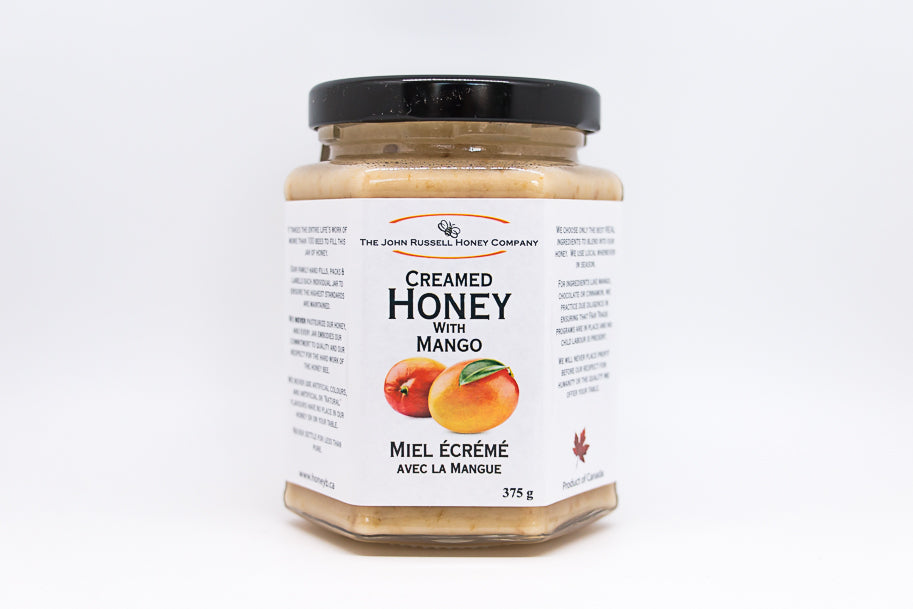 The king of tropical fruits! Mango has a sweet and subtle flavour profile that compliments creamed honey perfectly! Herbal teas and tisanes are one of the best ways to use this taste of the sun, but it's also excellent with baked goods, salad dressings, English muffins, and toast. Creamed honey with mango is a wonderful addition to any breakfast table!