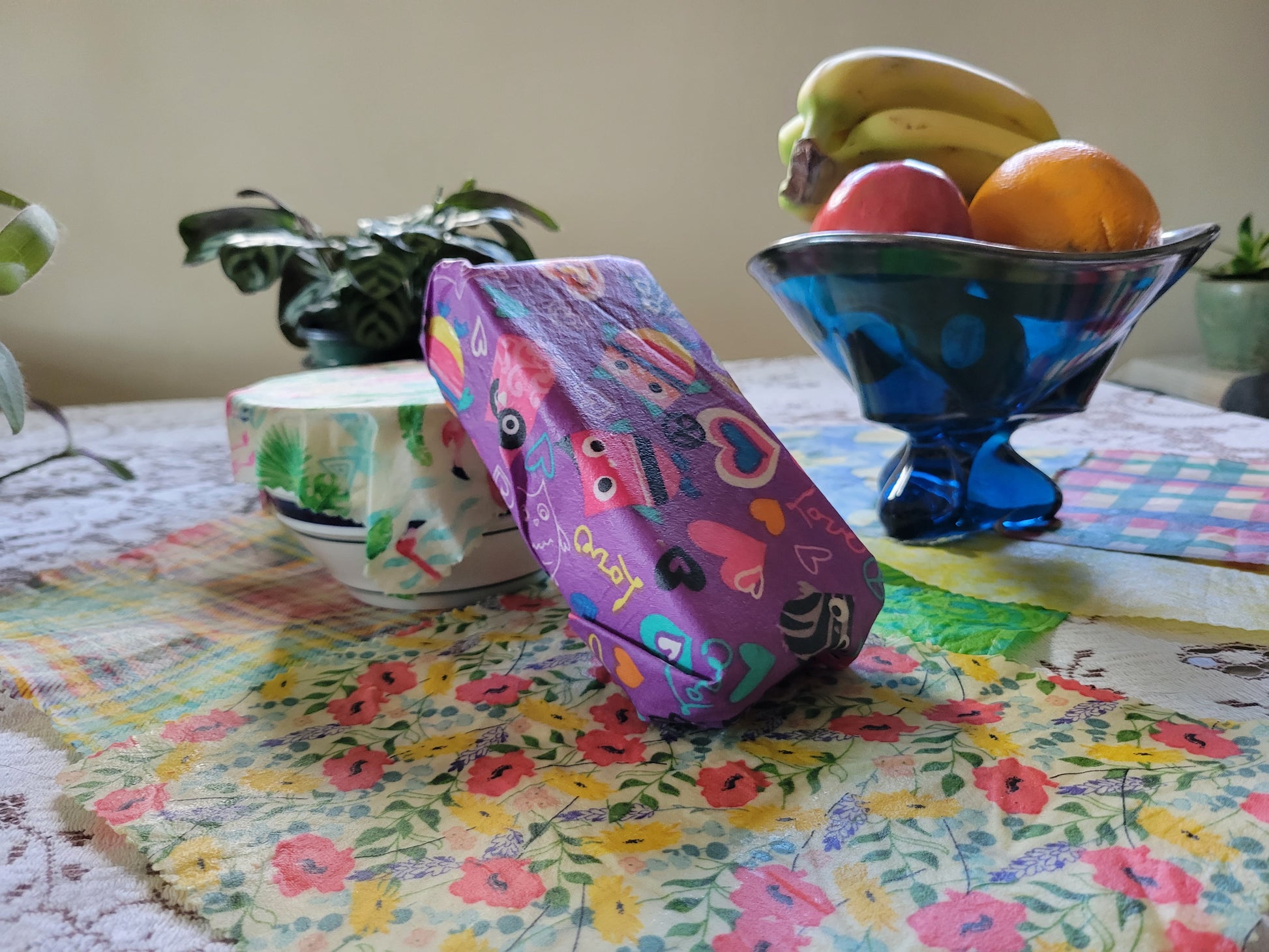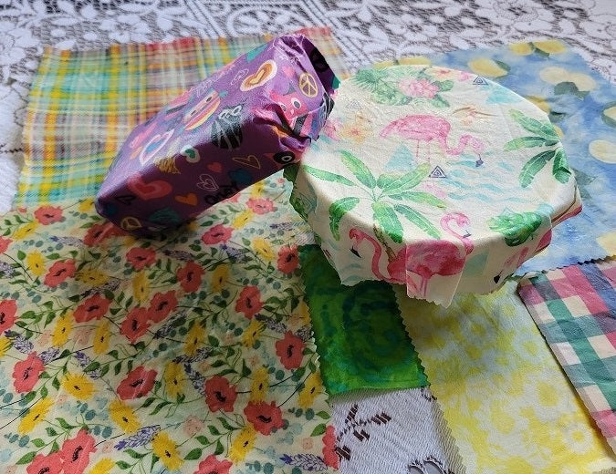 Handmade in house, these reusable Beeswax Food Wraps eliminate the need for plastic wrap, are made of all natural components, and are easy to use.