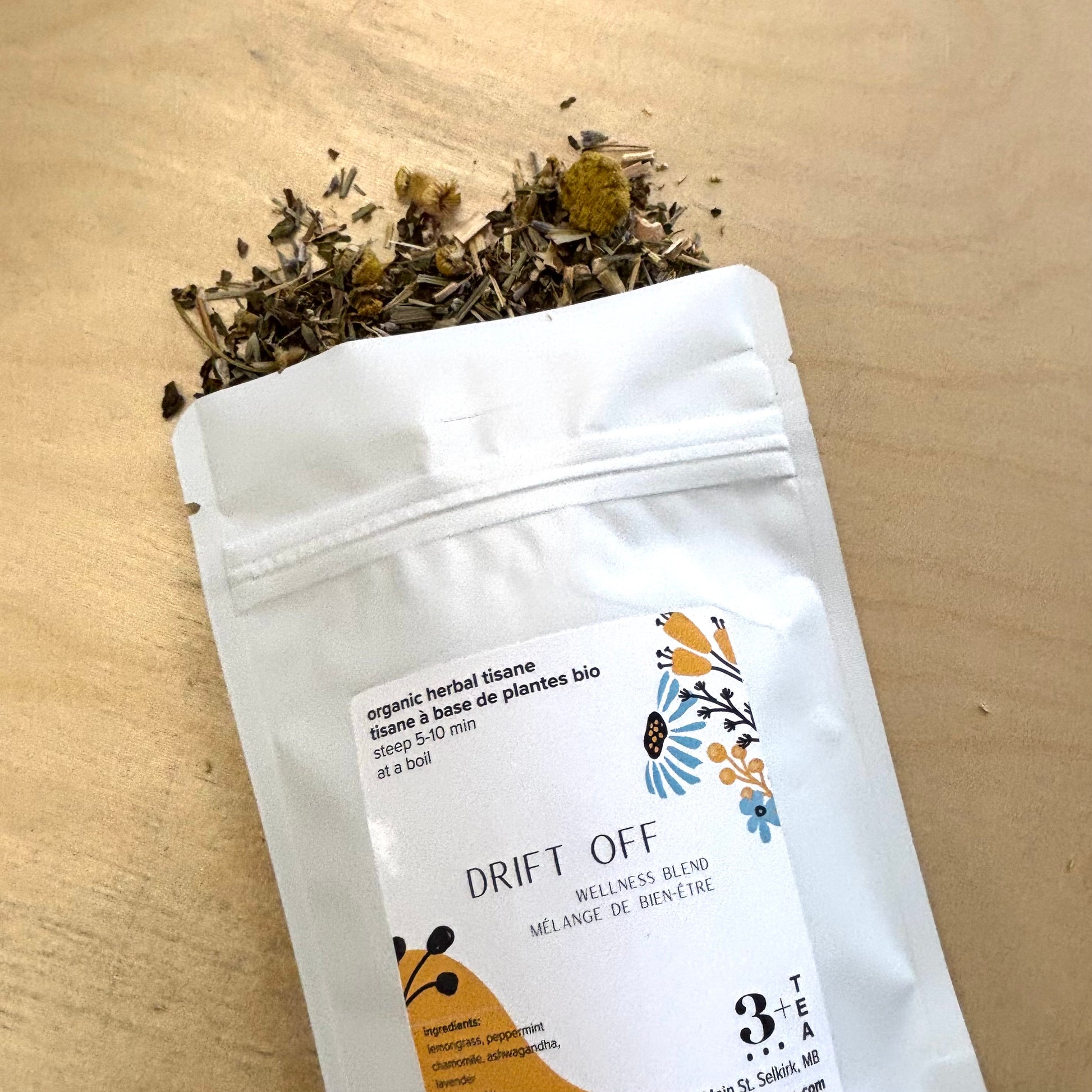 Loose leaf tea! Want sleep but sleep doesn't want you? Entice the Sandman with this Organic Herbal Tisane made with: Lemongrass, Peppermint, Chamomile, Ashwagandha, and Lavender. Drift into slumber, and leave the sheep to count themselves.