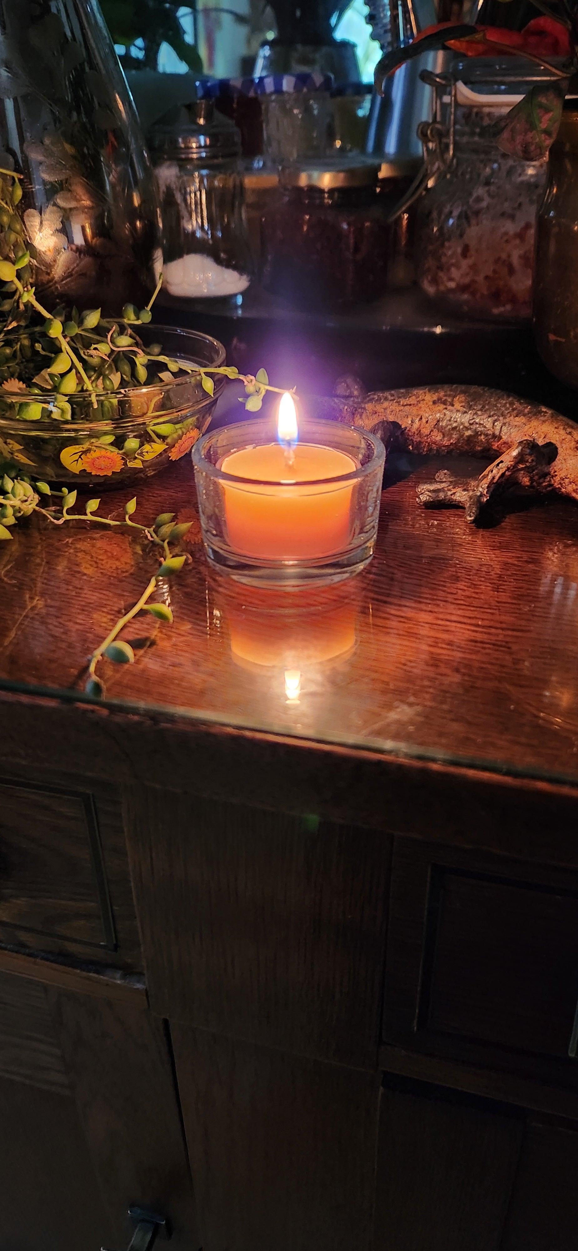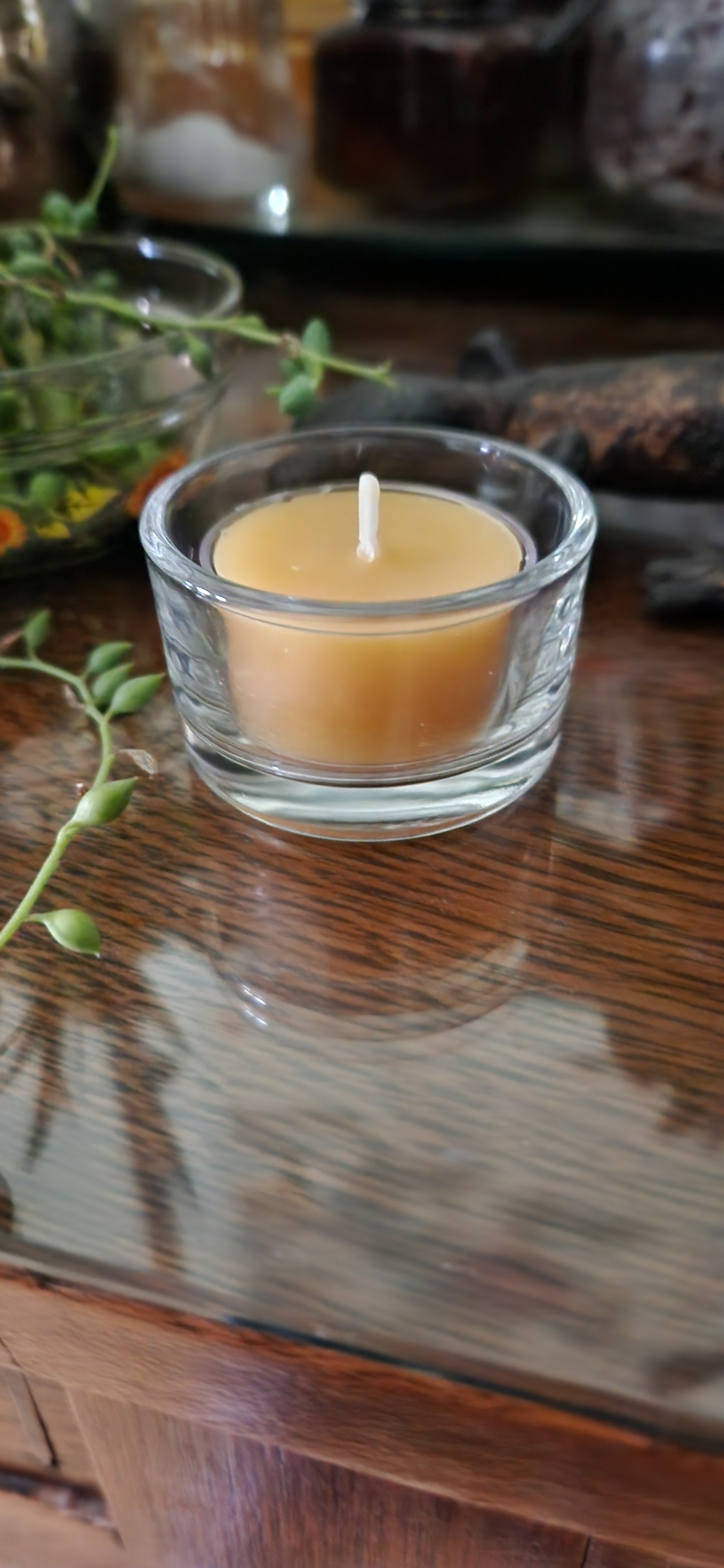 This beautiful glass tealight and holder combo will light up your evenings, provide romantic π₯° ambiance, and have your living space smell heavenly. The all natural scent of 100% beeswax purifies as it burns and leaves no residues or harmful aerosols like other waxes. Comes with its own tealight candle, but will also fit our Tealight Holder Replacements (5 Pack)Β as well. These have a two and a half hour burn time and are a wonderful gift for those who appreciate hand made and very highΒ quality candles.